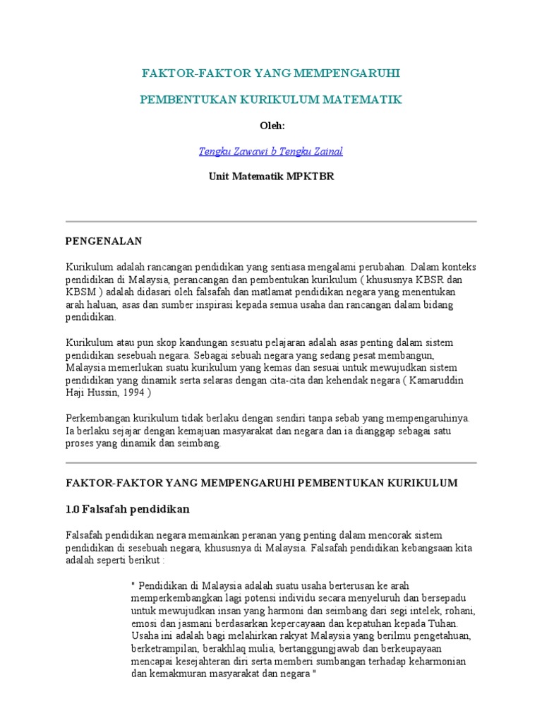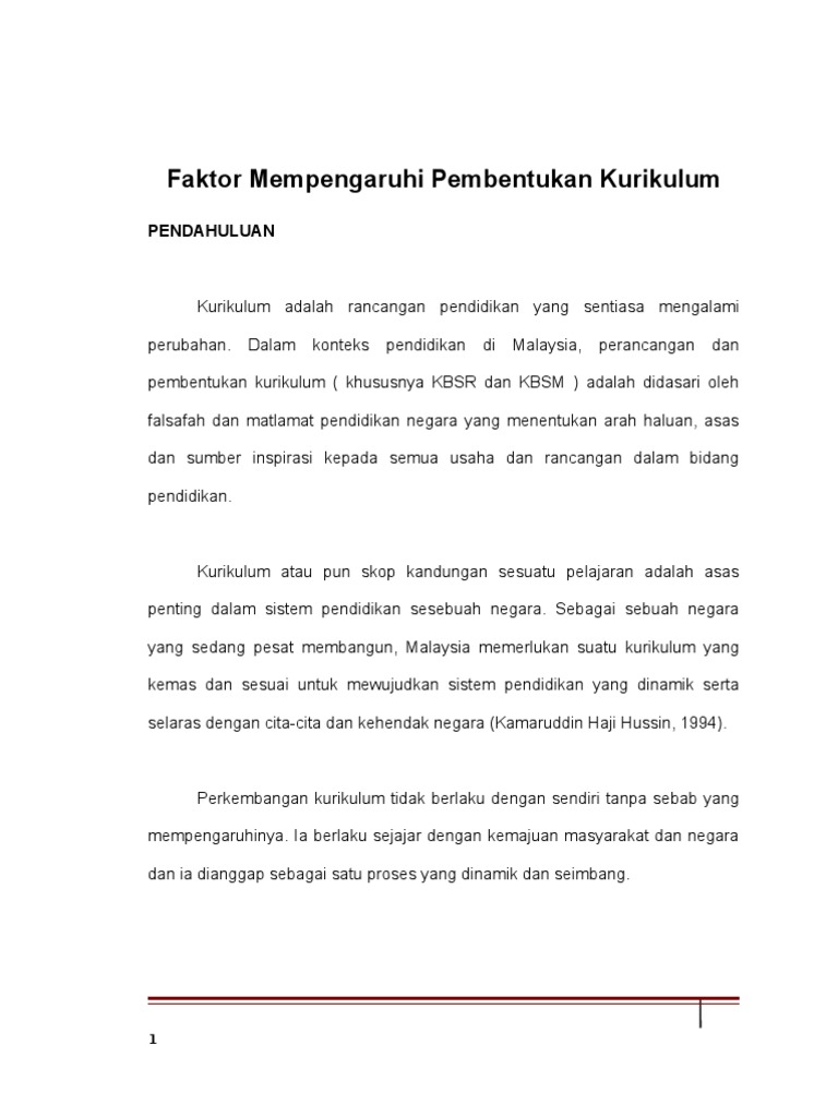 Faktor Perubahan Kurikulum Pendidikan Di Malaysia